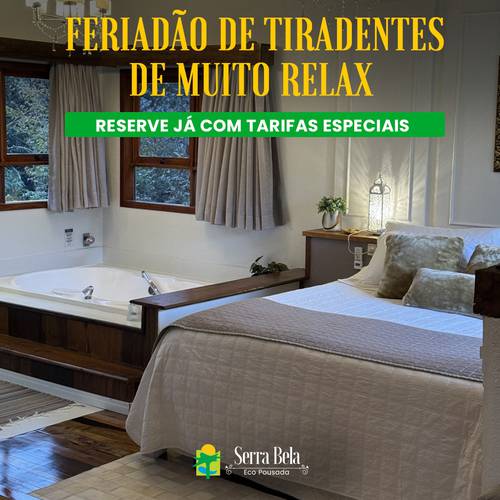 Eu e meu marido tivemos uma experiência incrível na Serra Bela, nós ficamos no Chalé 9, muito lindo, amplo, vista maravilhosa, extremamente aconchegante e com uma banheira de hidromassagem maravilhosa. O atendimento nota 10, cafe da manha delicioso :) Estão de parabéns e super indico a todos a Serra Bela Eco Pousada.