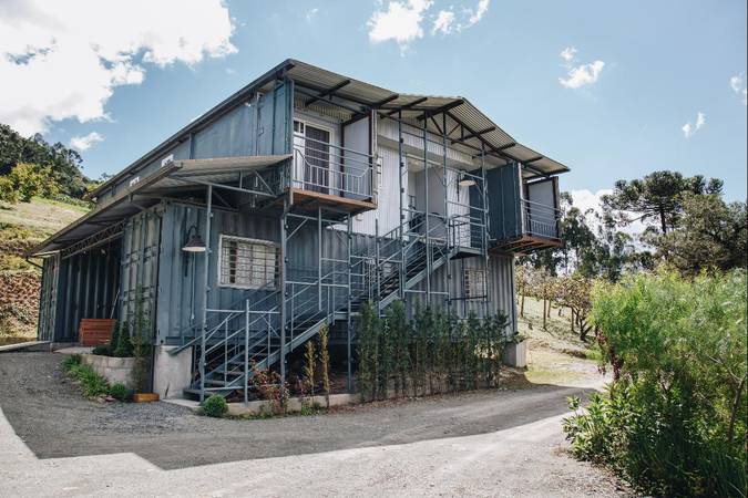 A Eco Suíte n° 8 está construída no segundo pavimento de um bloco com outras 8 unidades em containers, uma obra sustentável à beira do lago. Hospeda, em 27,5m², até 2 pessoas com muito conforto, possuindo varanda com vista para o lago, cama Queen Size e sofá-cama casal.