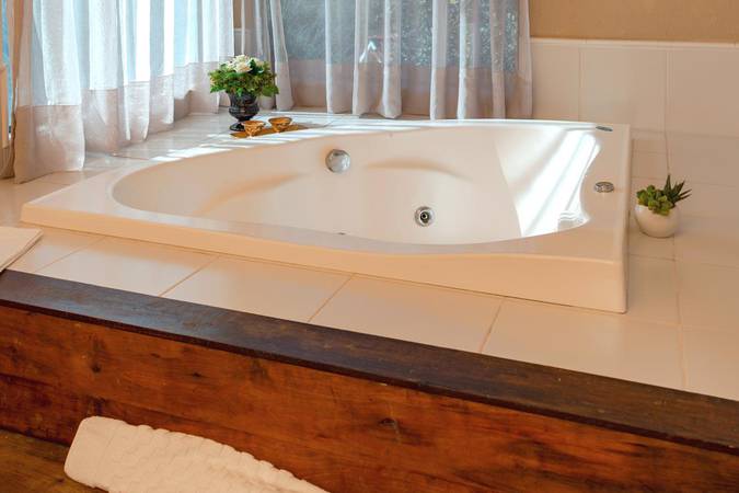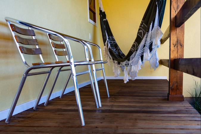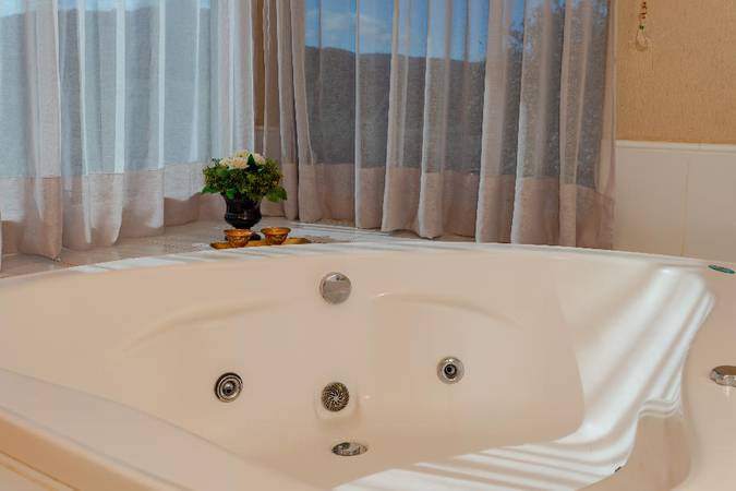 O Chalé conta com quarto com cama King Box e sala integrada com lareira à lenha, e ainda banheiro privativo com banheira de hidromassagem casal e janelas amplas para permitir a bela vista privilegiada da mata nativa.