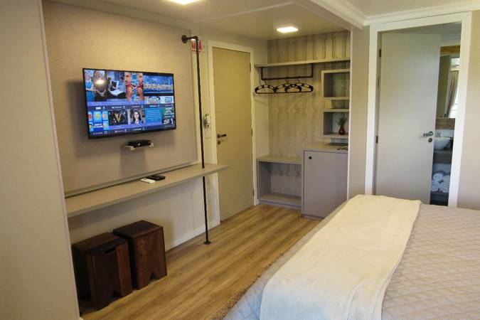 Você ficará muito bem hospedado em Urubici na Eco Suíte número 7, que com 26m² abriga confortavelmente duas pessoas em cama de casal Queen Size.